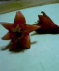 見えにくいけどざくろの花なのです。 保育園では秋になるとざくろの実がなって 園庭のあちこちにぷちぷちとちぎってたべるこどもがいます。 私も欲しい、と毎年思っているのだけど・・・。 だって買うと高いんだもん。 今年はおうちにも持って帰ってね、と長男にお願いしました。