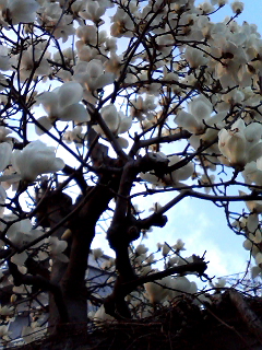 そして帰り道では「白い木蓮」 マンションのお隣の家の庭に立派な木蓮。 長男も名前を覚えて「木蓮みていこうよー」 というわけで、写真をパチリ。