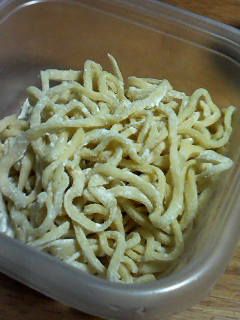 帰宅後はホームベーカリーを使って生パスタ作り。