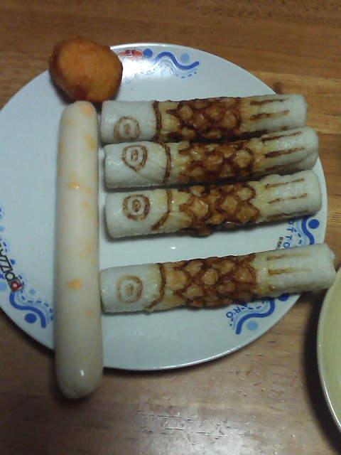 生協で発見したこいのぼりちくわと、ちーかま、からあげくんで
