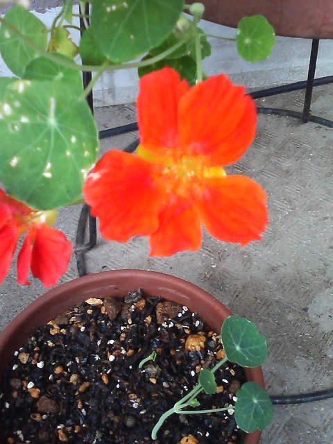 そして、4月にご近所パン屋さんのプレオープンで頂いたナスタチウムの苗。