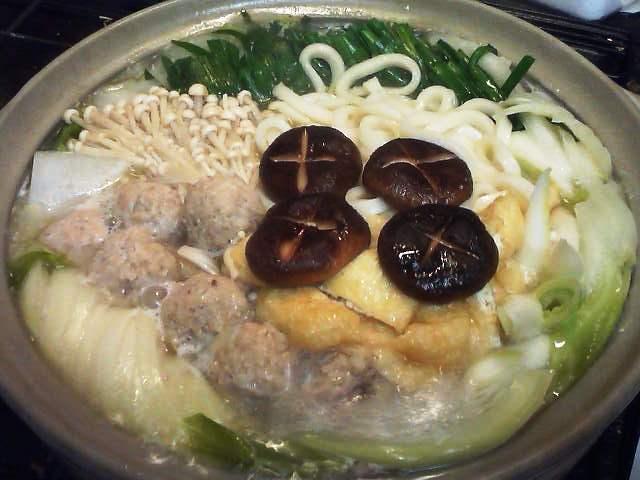 スープと鶏つくね、鶏モモ肉、豚肉が入ってます。