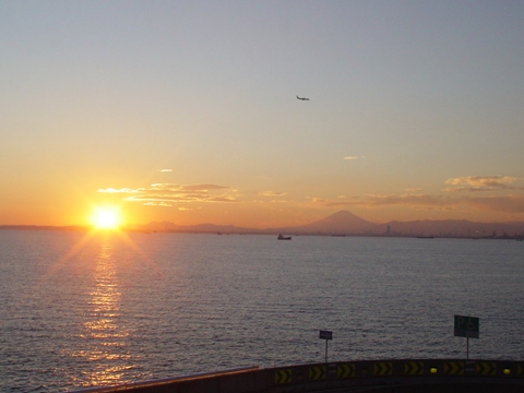 千葉に別れを告げて、海ほたるで休憩したら期せずして夕日を見ることが出来ました。