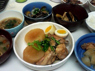 先日安売りで大根を一本買っていたら、生協の宅配でも頼んでいたので大根消費定食。
