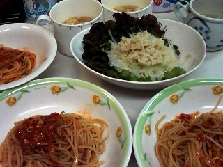 夜ご飯は、生協で買っておいたパスタソースを使って洋食に。