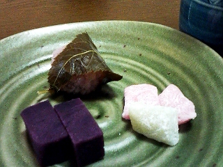 一口サイズの桜餅と、やわらか〜い求肥はピンクと緑の2色で