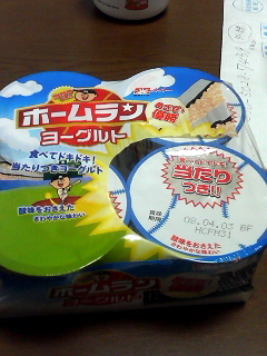 ホームランヨーグルトも食べました。そしてなんと3塁打大当たり!!
