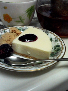 簡単レアチーズケーキにキャラメルアイスを添えて。