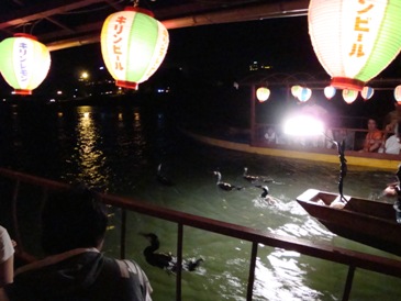 船で筑後川の日本で最南端という鵜飼いを見学。