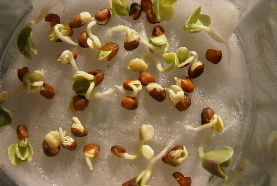 その日の夕方には、種の皮が割れたものが数個。育ってる育ってる。
