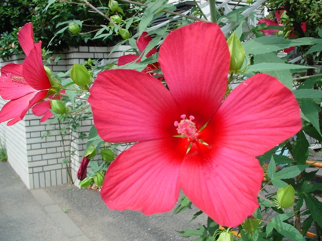 名前を知らないので調べよう、とずーっと前から思っていた花。 上の方は勝手に「木立ハイビスカス」と命名。 でも、葉っぱはハイビスカスとは違うしなぁ。 歩いているといろいろと気になるものがあるのだけれど 最近は、ちょっと暑さにやられてしまいそう。