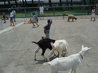 ここで、まず動物(羊・山羊・牛)とふれあうことに。