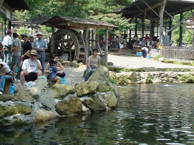 ちょっとした小川で水遊びを楽しんで、帽子を流されそうになったりして