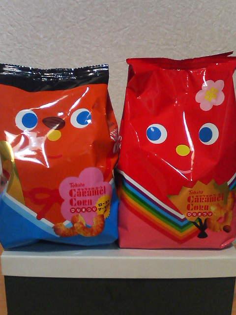 お雛様はノーマルキャラメルコーン、お内裏様はローストアーモンド味です。