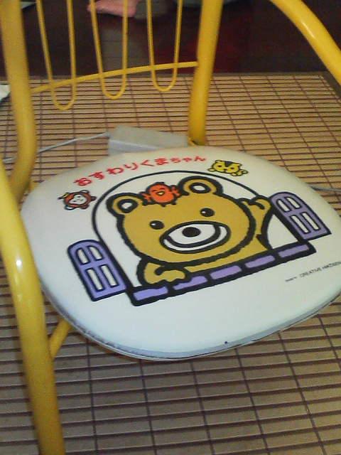 ↑おこちゃま椅子、その名も「おすわりくまちゃん」をがしっとつかんで