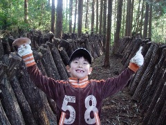 ちなみに、長男の後ろに広がっているようなシイタケ園がもう一箇所あって