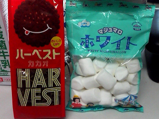 1.ハーベストカカオとマシュマロ(大き目)をご用意ください