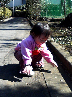 とことことこと歩いて何かを見つけてはしゃがみこんで