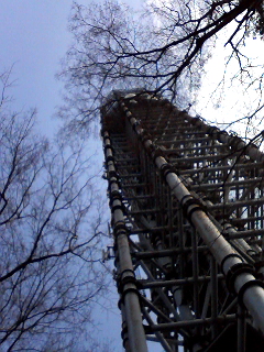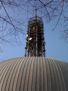 丸いプラネタリウムの上に見えるタワー。