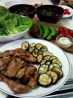 ナスのグリルはオリーブオイルとクレイジーソルトに漬け込んで