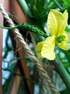 ある程度、根元がミニゴーヤ状態になってから開花。
