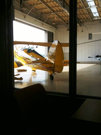 飛行場内の格納庫に併設されたカフェで、